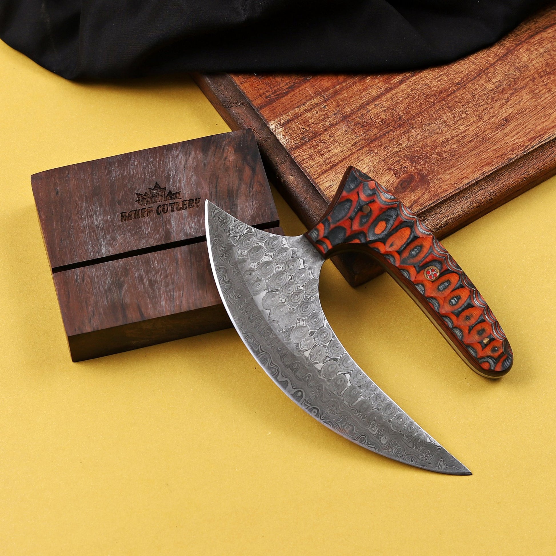 Banff Half Moon Damascus Steel Ulu Knife